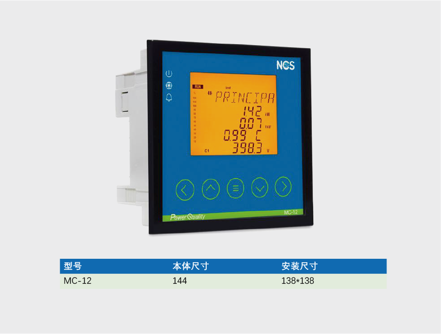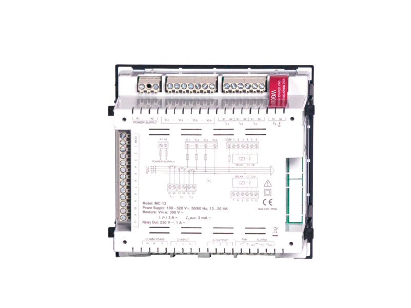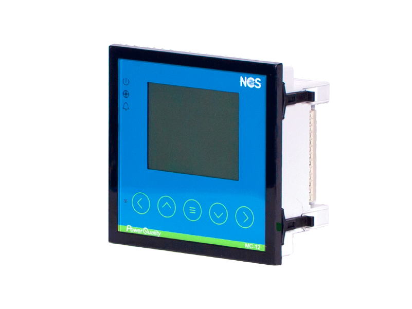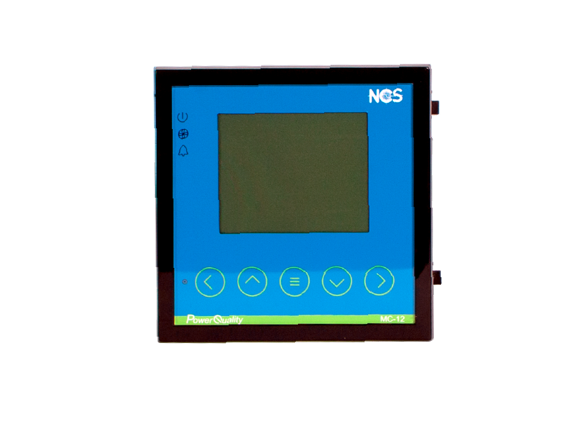 The MC-12 Power Factor Controller is a high-performance device that measures the system power factor and switches compensation steps to achieve the user-defined target PF.